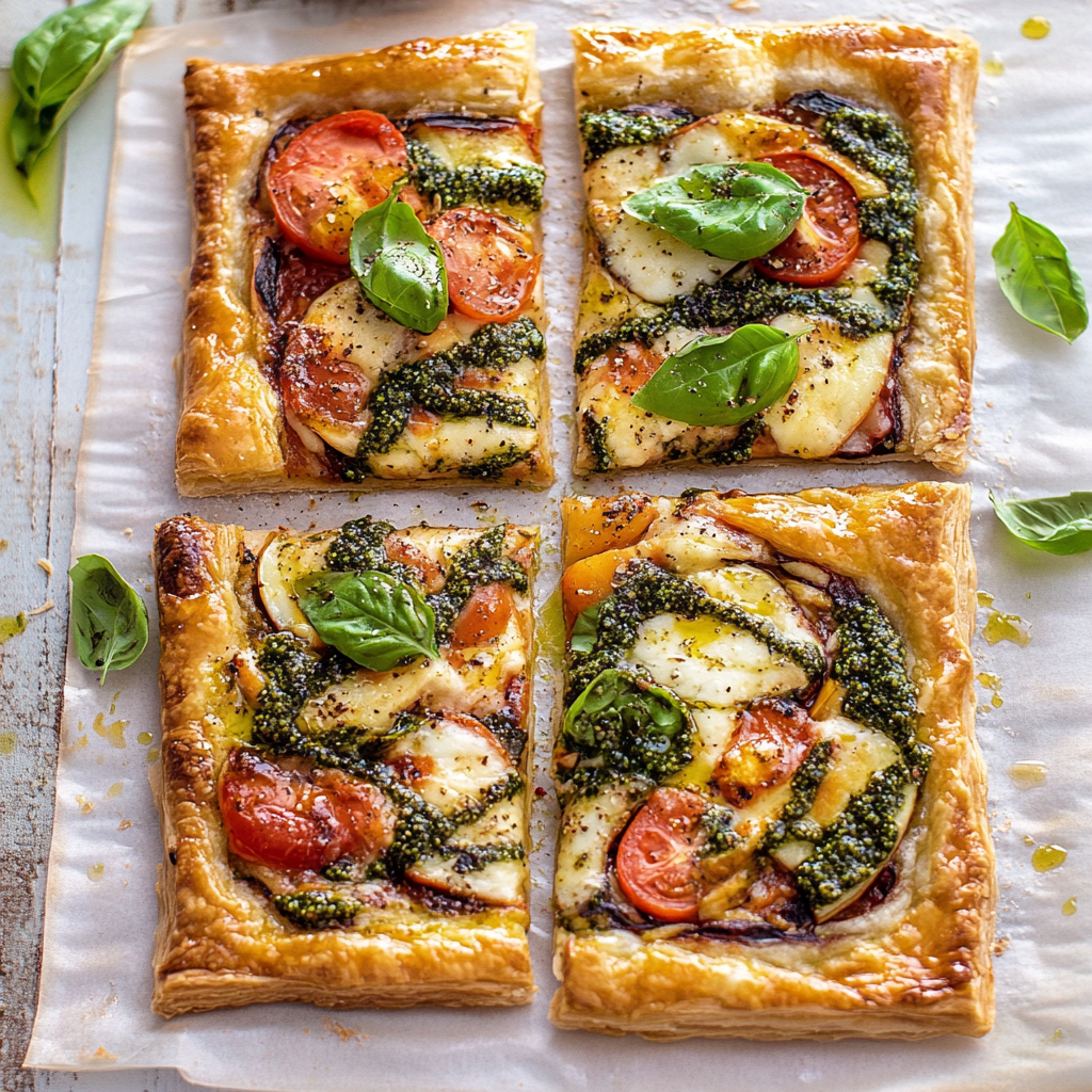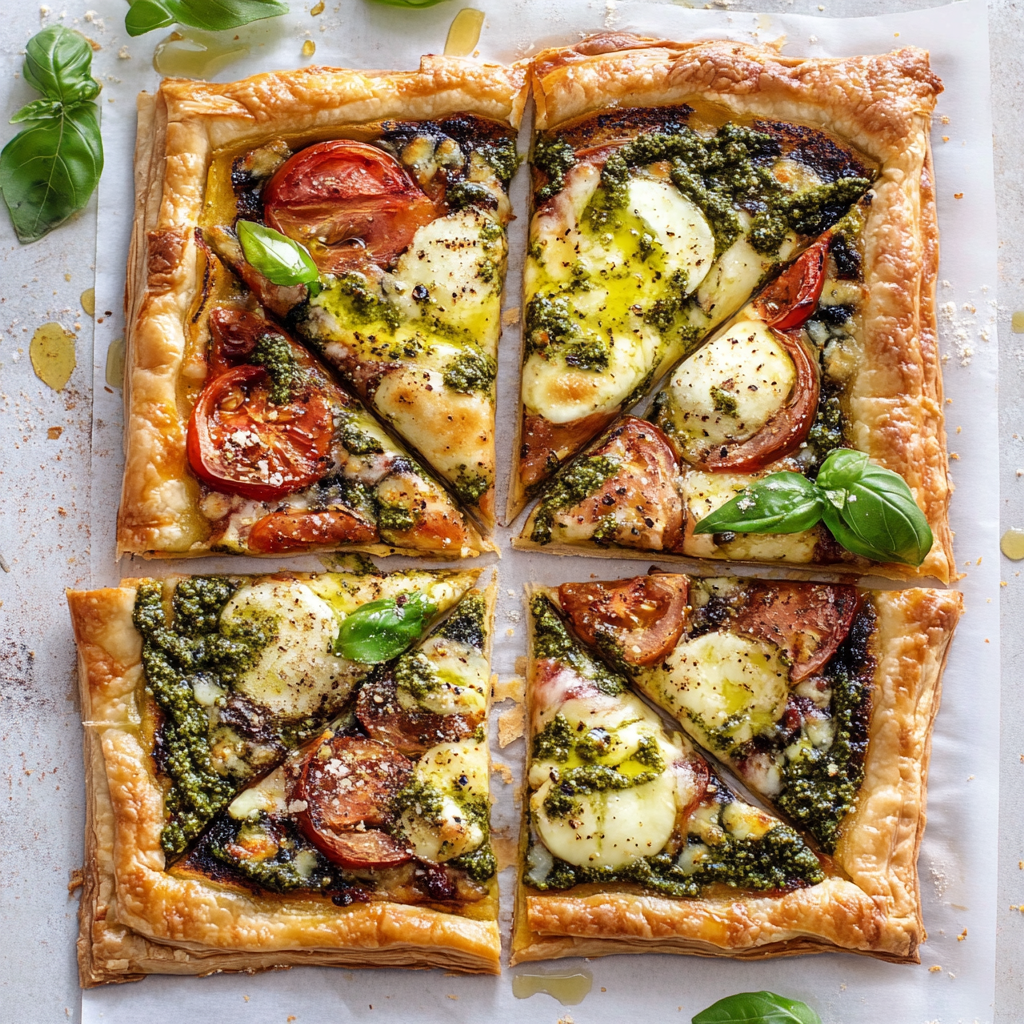 Pesto Caprese Puff Pastry Pizza